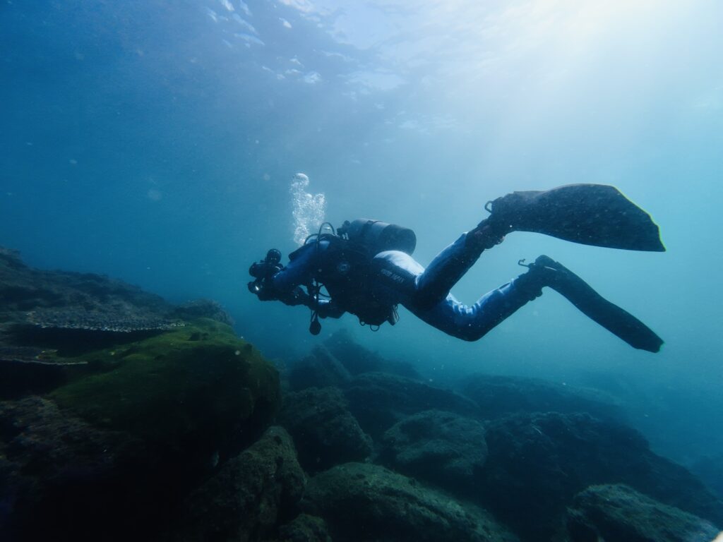 「サンゴも気になったし…」と、中性浮力で挑んでおります。